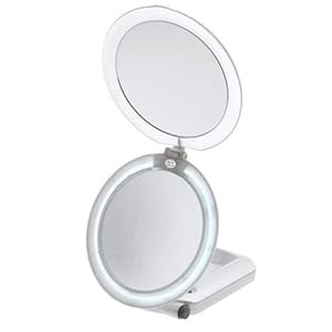 New innovative mirror features two (2) 6.25 inch mirrors that are illuminated with the effects of natural sunlight--giving you the light you really need, 1x & 10x magnifications to meet all of your regular and close-up view needs, adjustable height control to a high 16 inches, 360 degree swivel design so you put the mirror at the angle that's right for you, lifetime bulb, closes to a mere 1.5 inches--great for travel, office or home, four ... Read More...